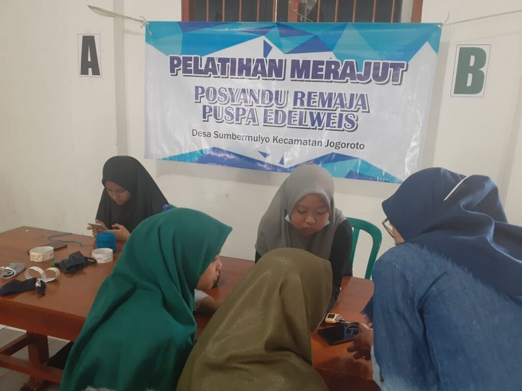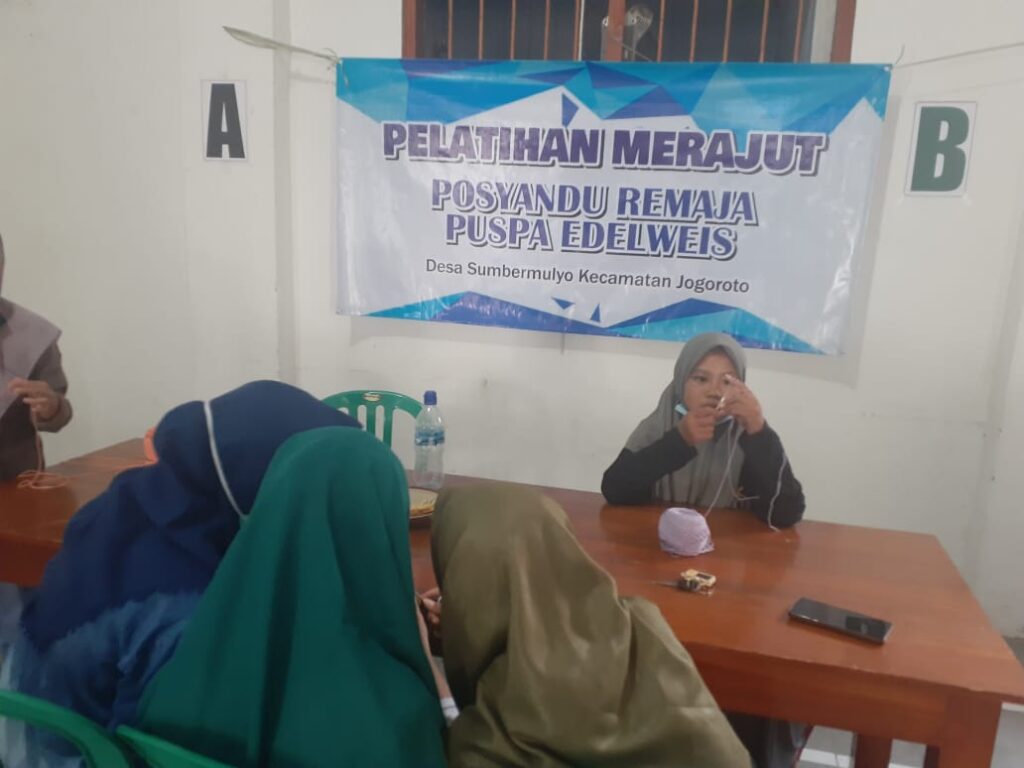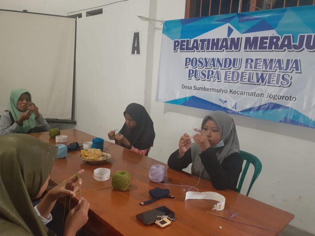 Dalam meningkatkan kreatifitas Remaja Desa Sumbermulyo Posyandu Remaja Puspa Edelweis Desa Sumbermulyo mengajak remaja Desa Untuk ikut Pelatihan Merajut yang dilaksanakan pada hari Jum’at Tanggal 25 Desember 2020 di Balaidesa Sumbermulyo
