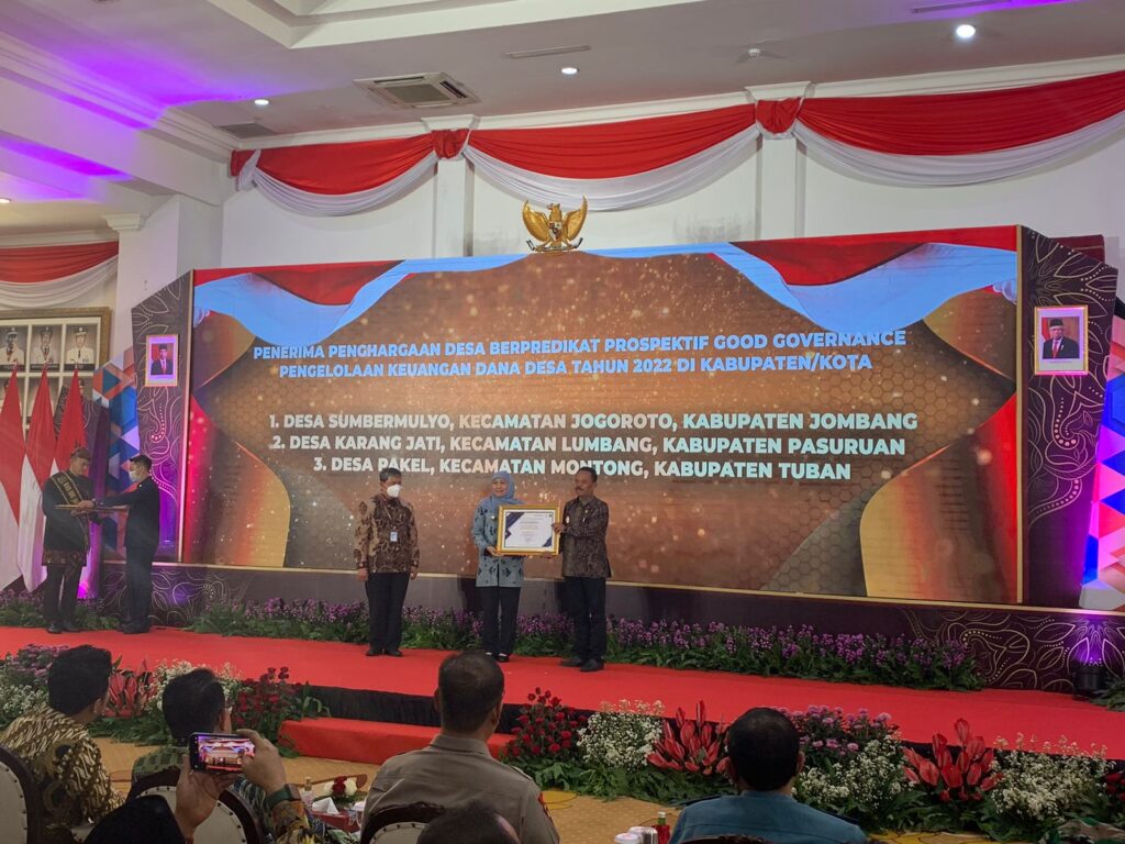 Pemerintah Desa (Pemdes) Sumbermulyo, Kecamatan Jogoroto, Kabupaten Jombang, menerima penghargaan sebagai Desa “Prospektif Good Governance” dari Direktorat Jenderal Perbendaharaan Kantor Wilayah Provinsi Jawa Timur.