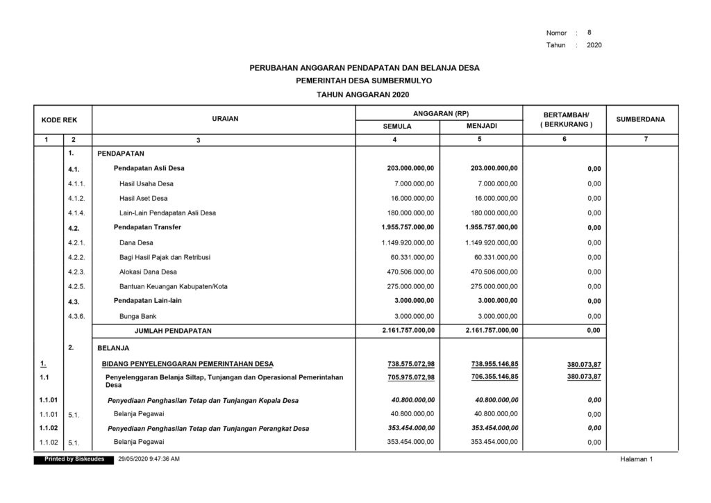 • Anggaran Pendapatan Dan Belanja Desa Tahun 2020