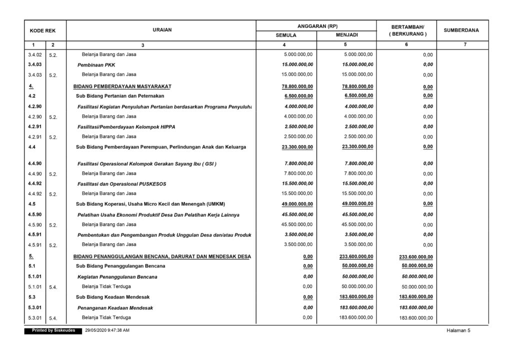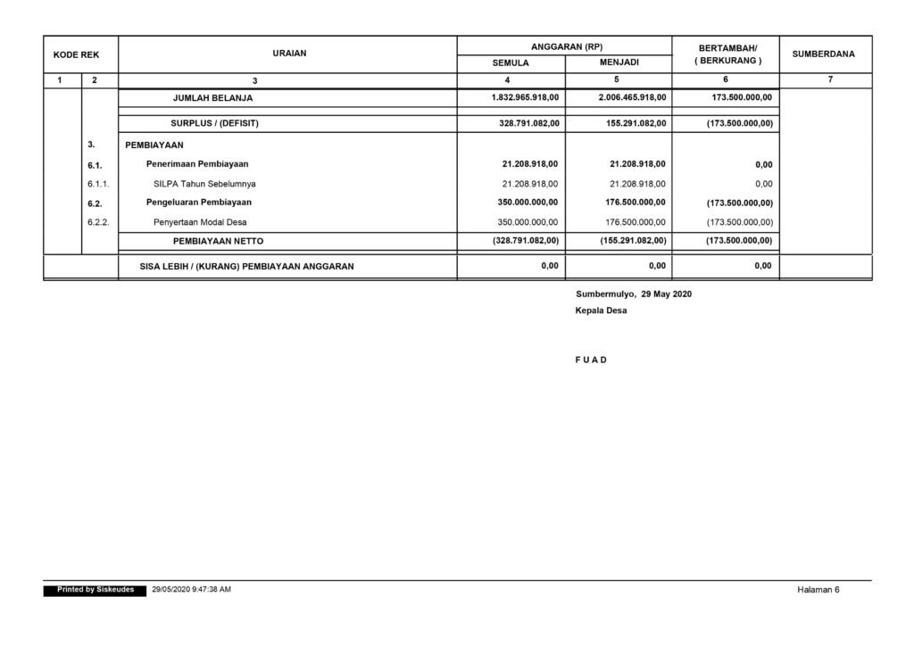 • P3 Anggaran Pendapatan dan Belanja Desa TA 2020