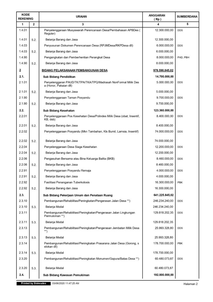 P2 Anggaran Pendapatan dan Belanja Desa TA-2020