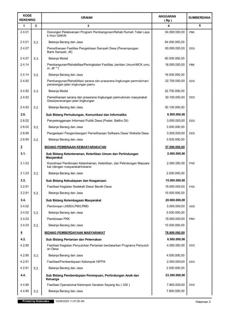P3 Anggaran Pendapatan dan Belanja Desa TA 2020