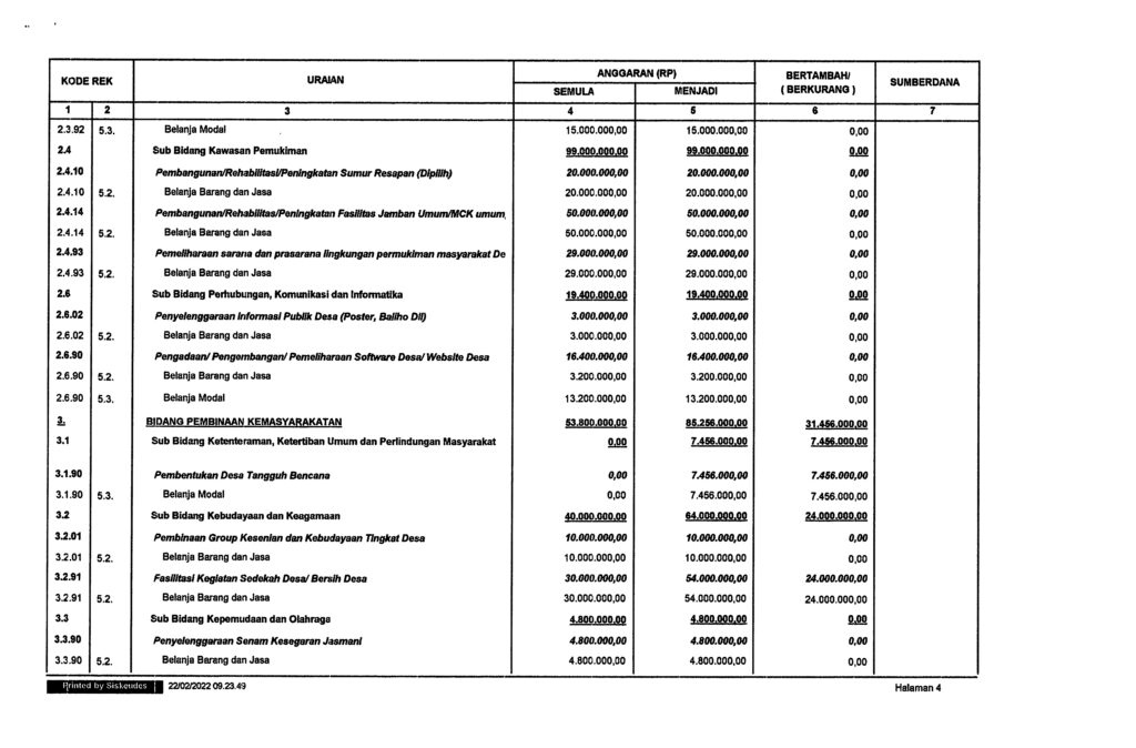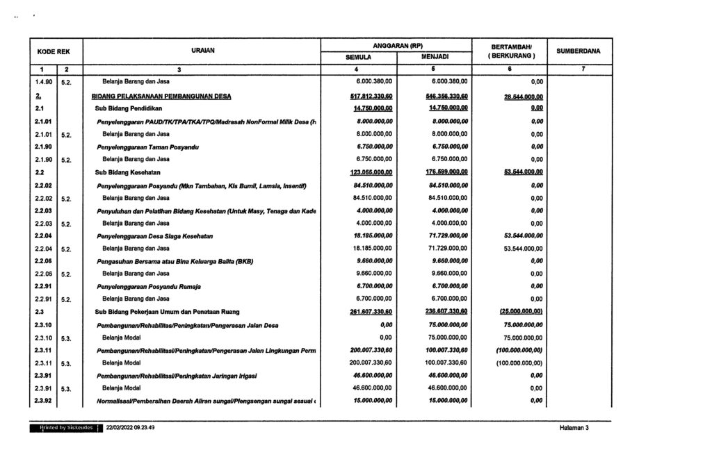 • Anggaran Pendapatan Dan Belanja Desa (APBDesa) Tahun 20222
